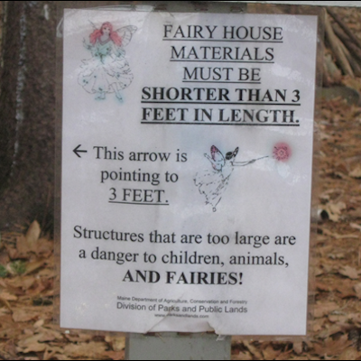 I'm thinking the boys and tomboys, perhaps with the collusion of their dads, had hauled logs, larger branches and pieces of driftwood to make tepee-shaped hobbit houses with yawning doorways. A supplemental sign, merely laminated paper, forbade the use of any wood longer than three feet, arguing that large structures could be dangerous to animals, children and in bold, block letters, to FAIRIES.