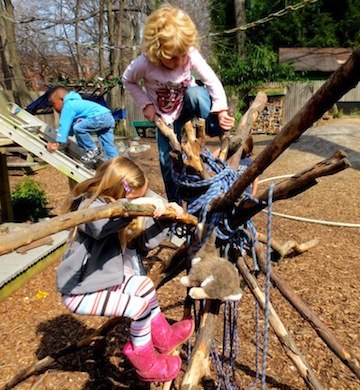 By contrast, a playworker puts the box in the midst of the kids, backs off, and shuts up. He watches to see what they do. They might tie the ropes onto something for dragging, swinging or something else. If they want help, the playworker works with them figuring out what they can do to make it work. No enabling.