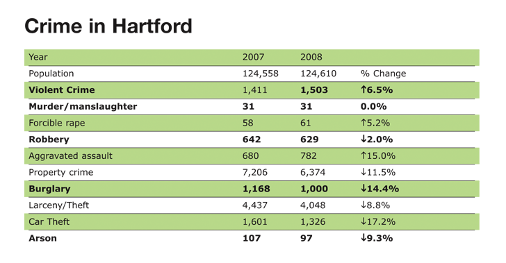 To view the 2007 crime data, click here and scroll down to Hartford. To view the 2008 data click here.