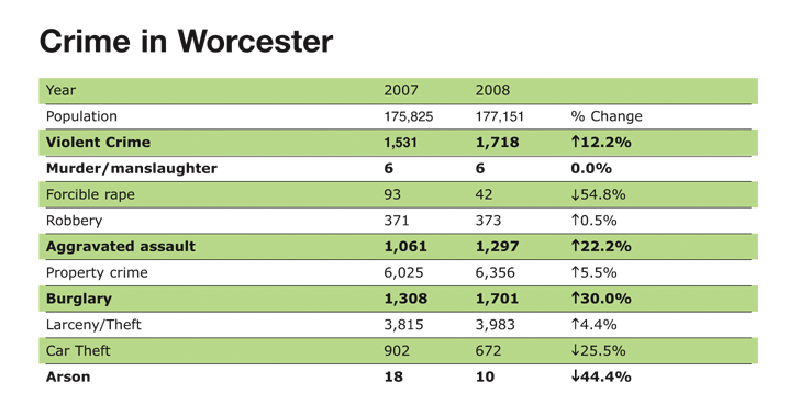 In Worcester, police have poured resources into fighting crime during the summer months—when activity is typically higher, regardless of the economy, according to Sgt. Kerry Hazelhurst, the public information officer.