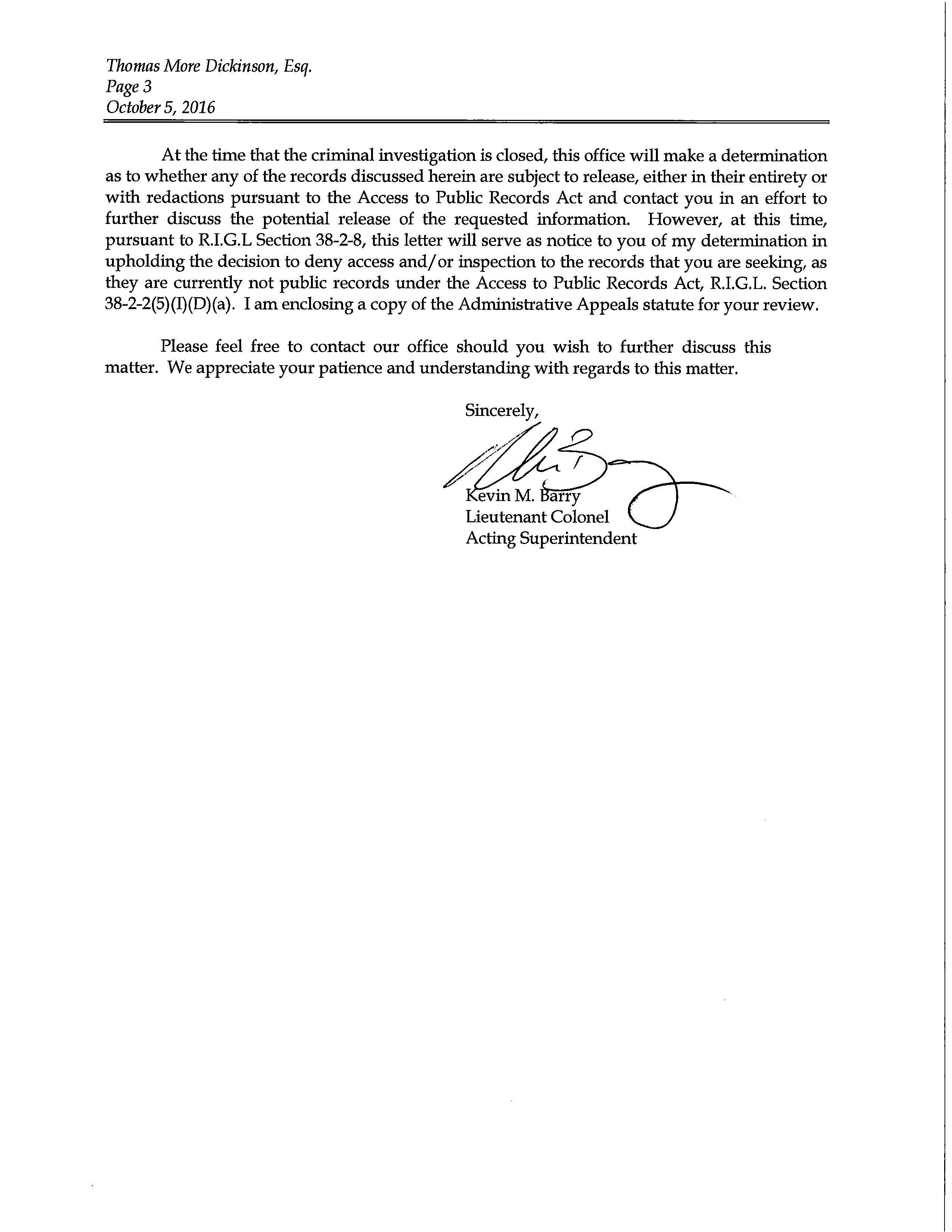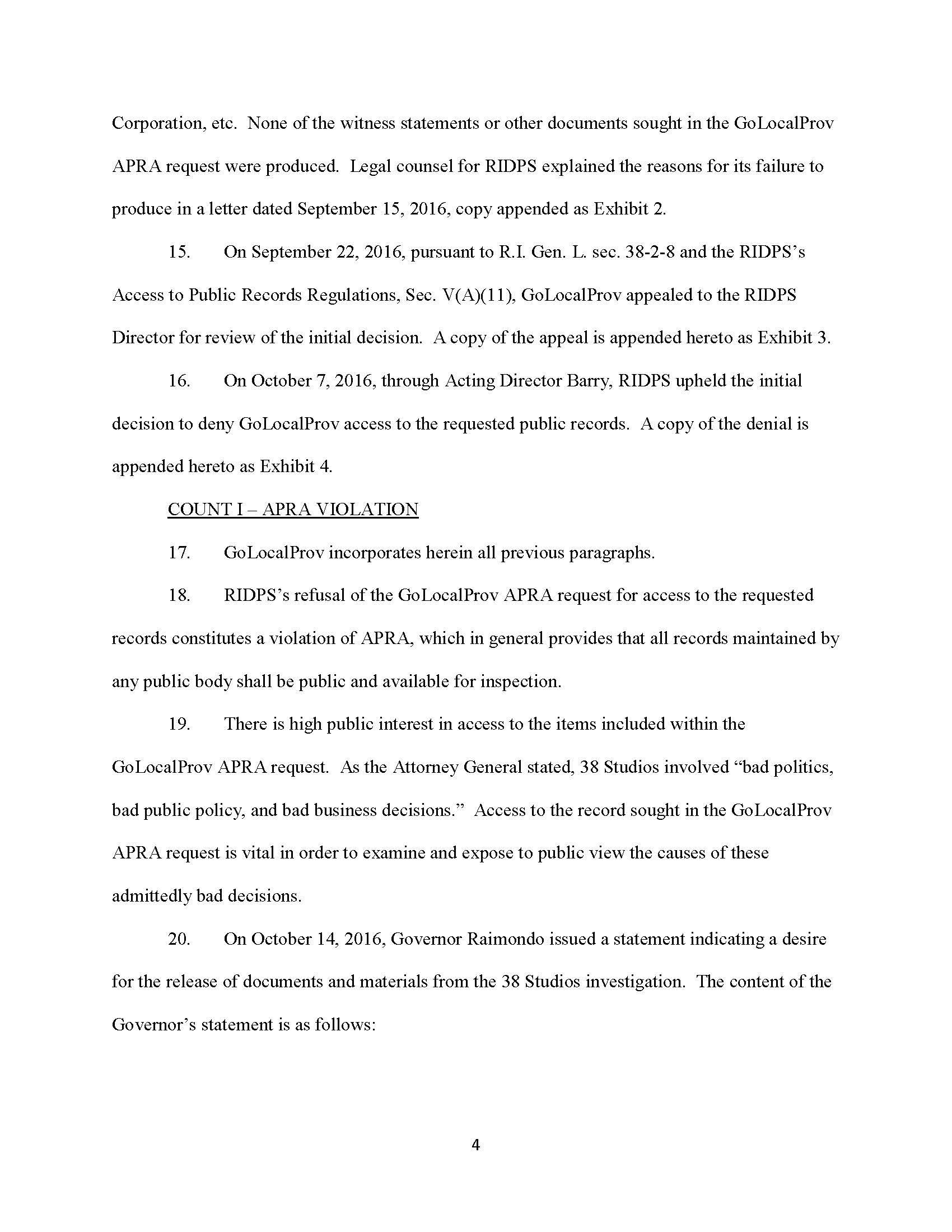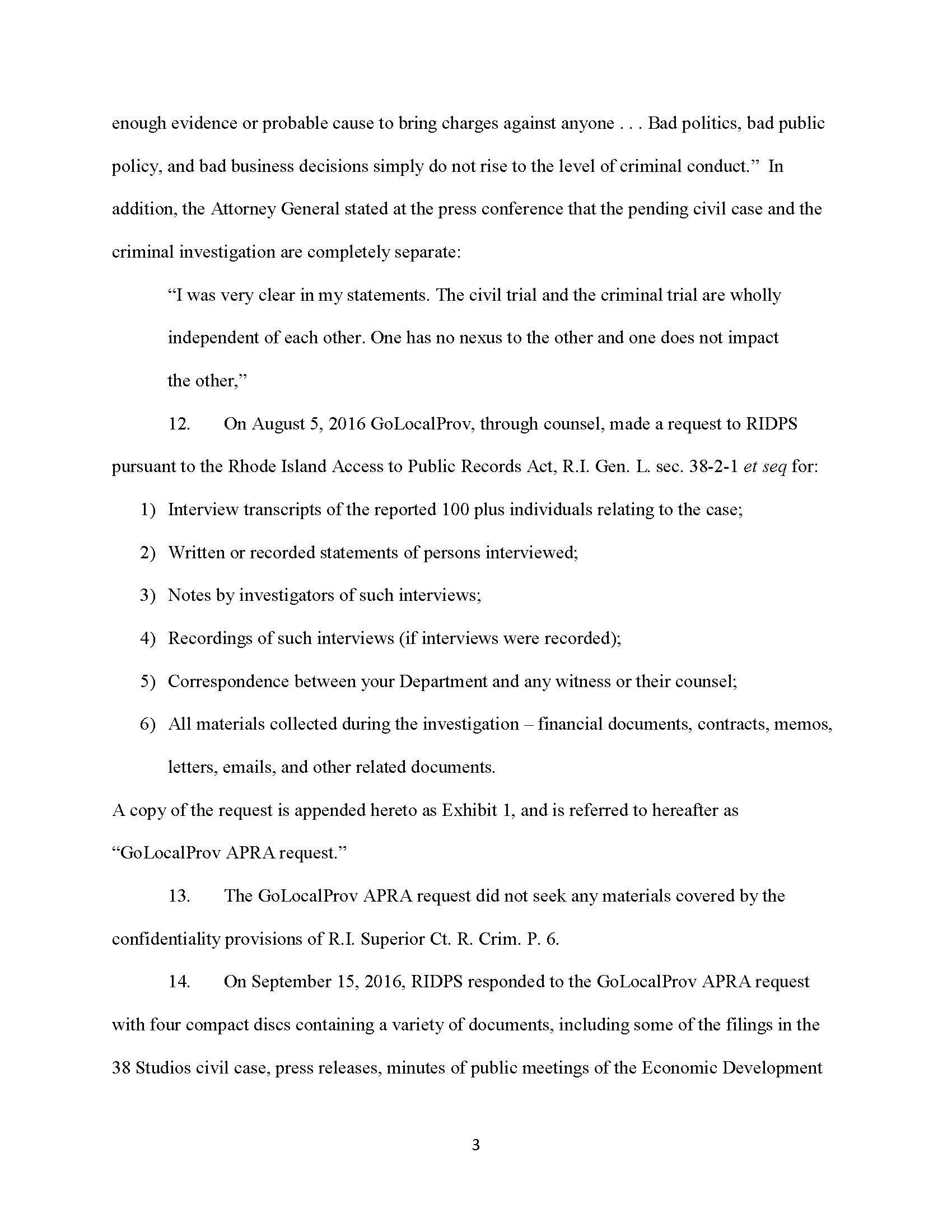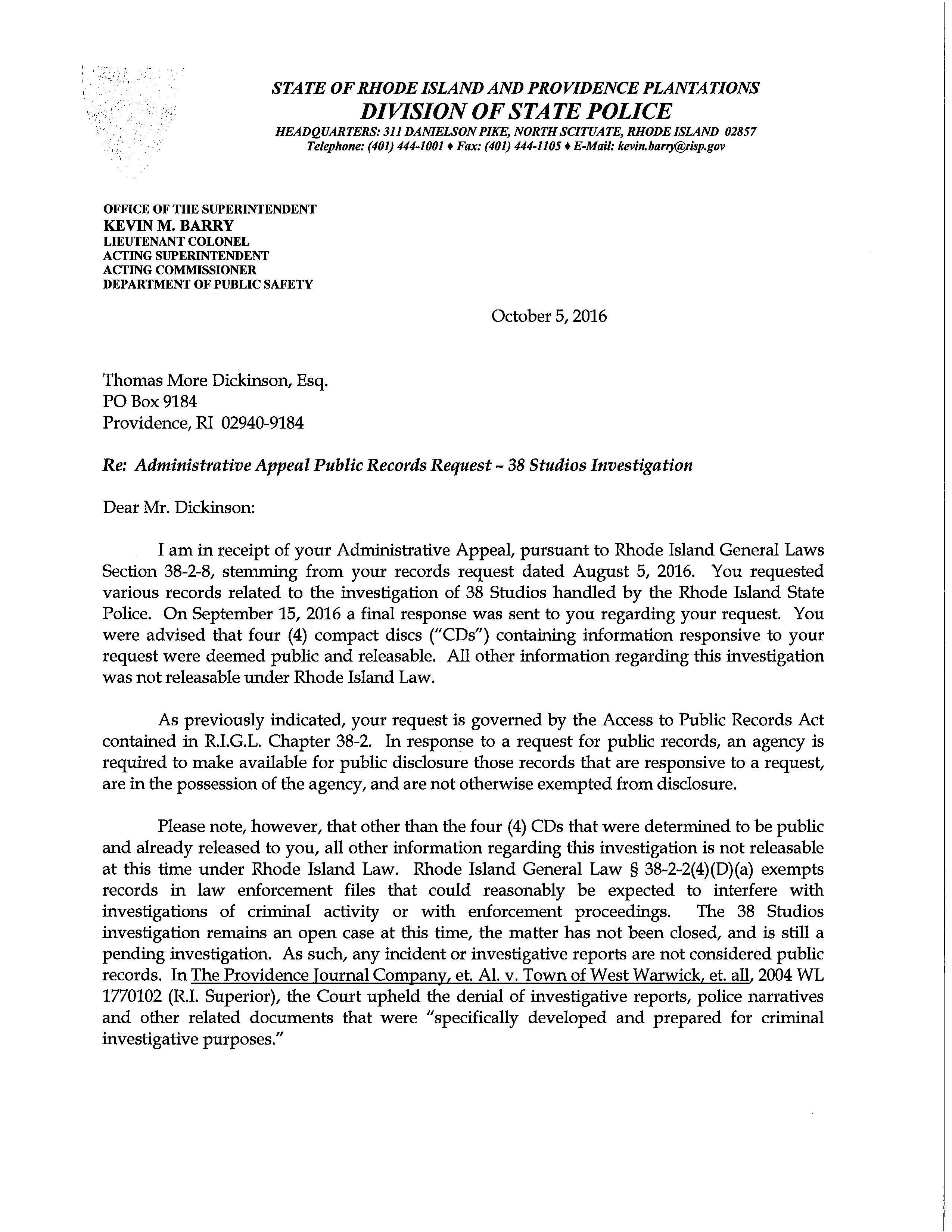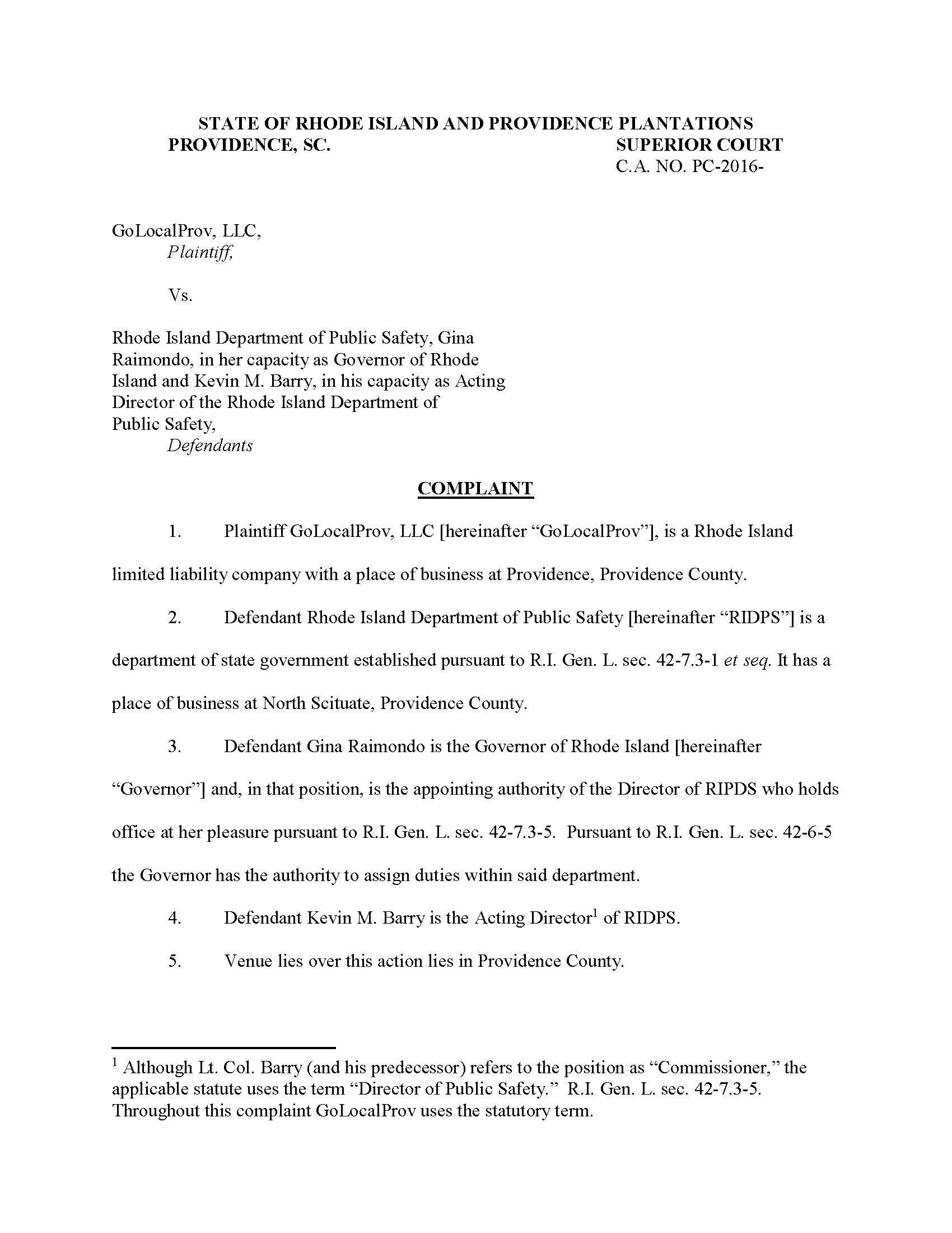 GoLocal filled suit in October against the Raimondo, the Director of Public Safety, and the Superintendent of the State Police to release the State Police documents. Many of those documents have been released, but a number of other continue to be blocked by Attorneys for the Governor and Public Safety.