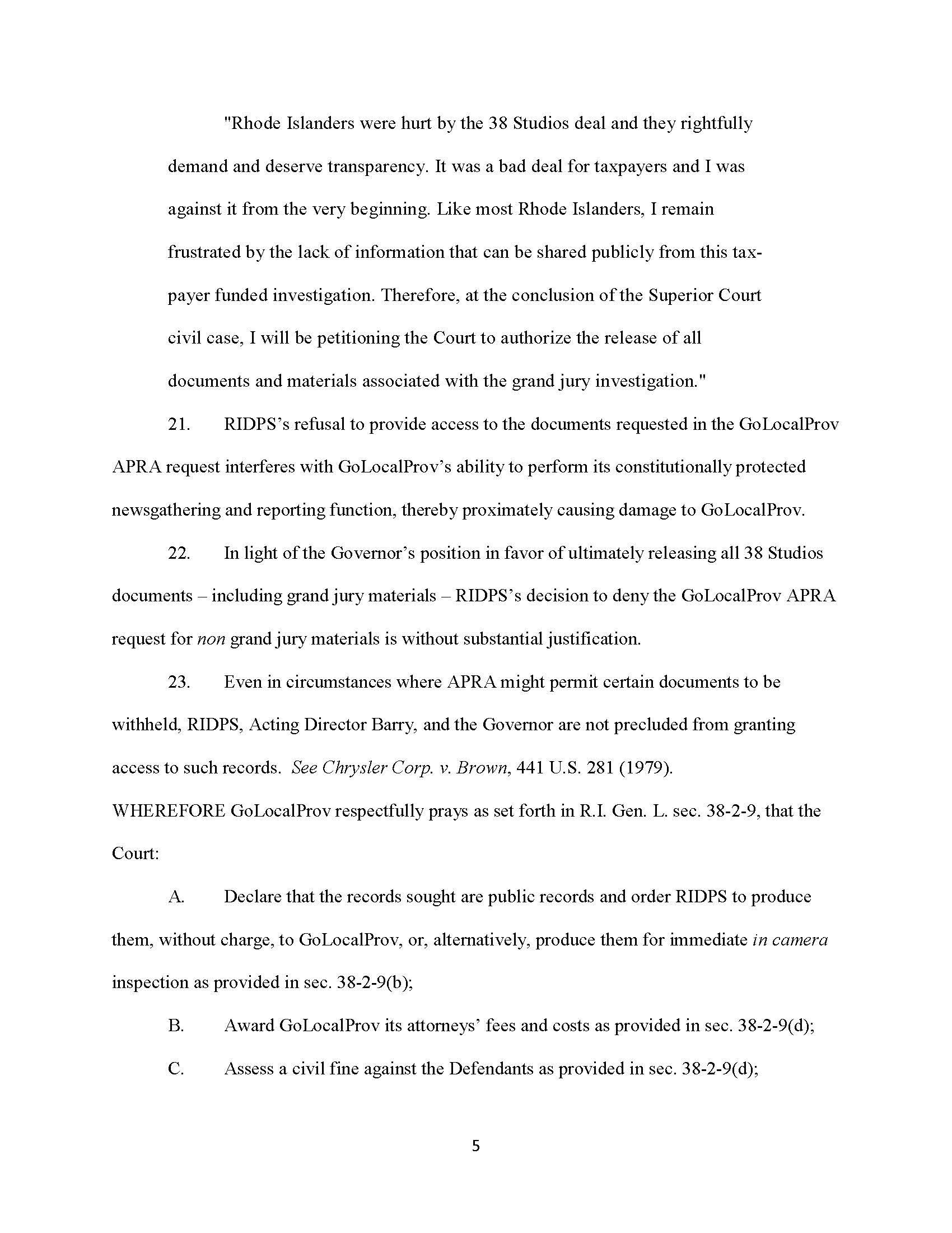 “The people of Rhode Island deserve to have access to all the information regarding the 38 Studios debacle,” said Senator Lombardi, who serves as chairman of the Senate Committee on Rules, Government Oversight and Ethics. “Government works best when it’s completely transparent — and that’s exactly what people expect.”