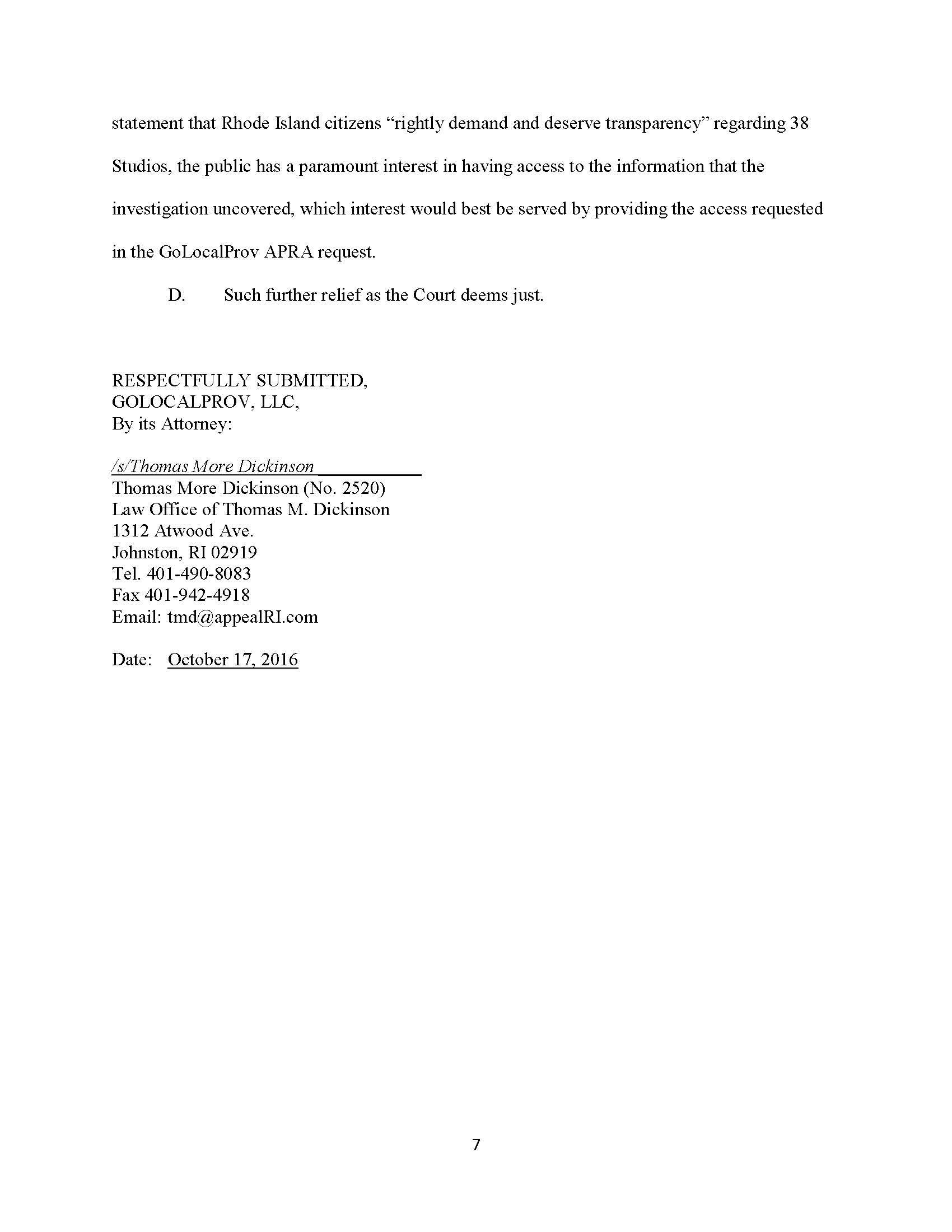 The order was filed at 4:13 PM -- almost exactly one-year after Kilmartin and former RI State Police Colonel Steve O'Donnell had their press conference announcing that there would be no criminal charges in the 38 Studio bankruptcy.