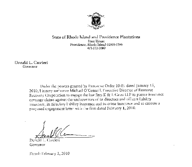 GET THE LATEST BREAKING NEWS HERE -- SIGN UP FOR GOLOCAL FREE DAILY EBLASTIn fact it was Gov. Donald Carcieri who authorized the hiring in a Feb. 2, 2010 letter he sent to the Rhode Island Resource Recovery Corporation (see below).