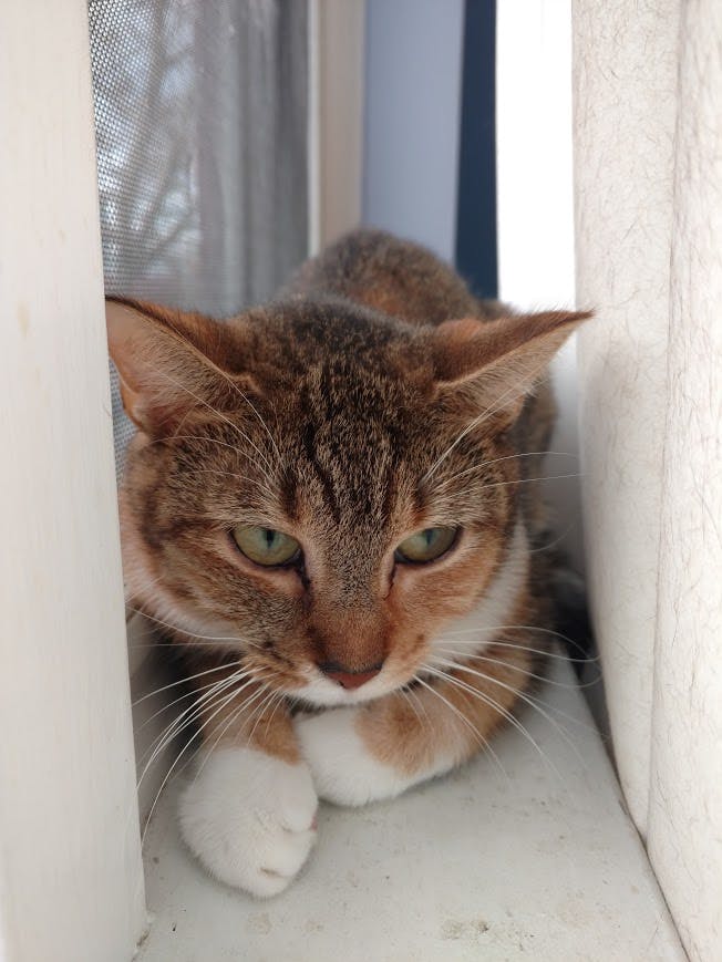 My name is Starfish and I am a 2 year old female. I am a very cute little lady that hasn't been exposed to much, so I get very nervous about a lot of things. I am looking for a home that is very quiet and predictable, with a human that is going to be okay with a cat that likes to hide and do her own thing. I'm working undercover to keep an eye on you and your household. You may not even know you're under surveillance. I can vanish into thin air if anyone or anything interferes with my investigation. If you need a cat who knows how to stay out of trouble and will always keep your secrets, I just might take your case.