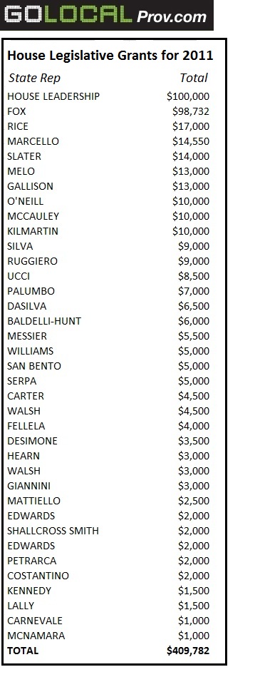 In the House, a GoLocalProv review of the grants shows that none went to any Republican members—but none of those reps applies for grants either. All but one of the state reps who voted against Gordon Fox as Speaker—Lisa Baldelli-Hunt—did not receive a grant. In the Senate, on the other hand, grants were spread between members of different parties.