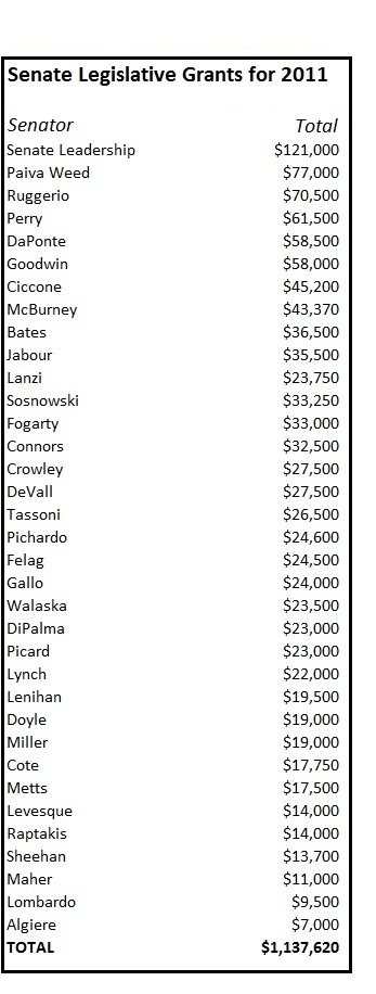 Note: Because the grants were given out over the course of the 2010-2011 fiscal year, some reps and senators who are not currently serving are listed as recipients.