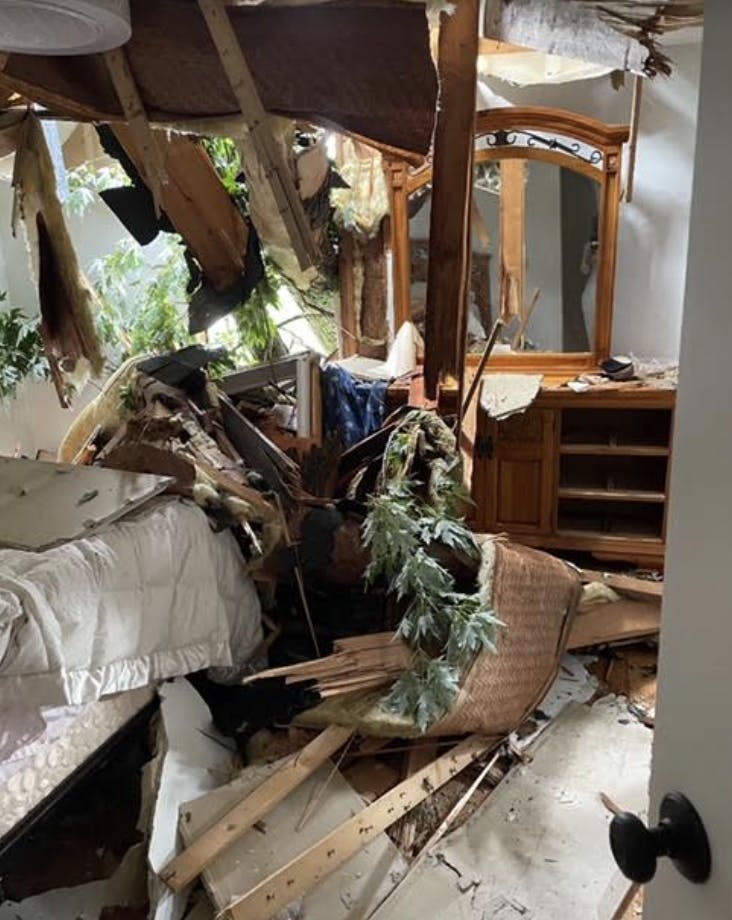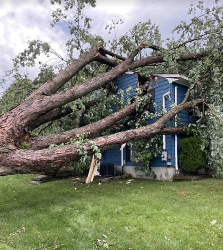 In Lincoln, Rhode Island, one house suffered significant damage after a large tree was uprooted and came through a bedroom ceiling.