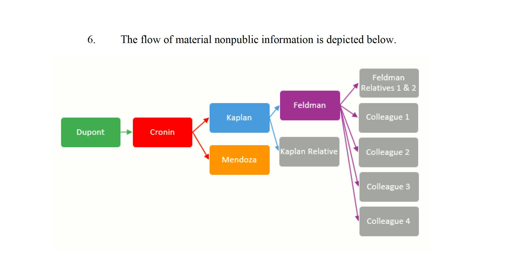 In addition, the SEC asserts, “Kaplan and Feldman each traded on the information to purchase Portola stock and call options, including short-term, out-of-the-money call options, ahead of the Announcement. Kaplan and Feldman also unlawfully provided the material nonpublic information to several of their relatives and colleagues, who also purchased Portola securities ahead of the Announcement. Cronin further unlawfully tipped material nonpublic information about the Alexion-Portola Deal to his close friend Mendoza, who was also Dupont’s close friend. Mendoza then traded on that information, purchasing Portola stock ahead of the Announcement.”
