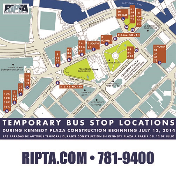 Bus routes will be altered slightly to avoid entering into Kennedy Plaza, with bus stops relocating to Exchange Street, Sabin Street, Exchange Terrace, Fountain Street, and Steeple Street. The Park N’ Ride service will be relocated from Exchange Terrace to Sabin Street but will continue to pick up passengers at other downtown locations.