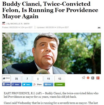 Business Insider called Cianci the "poster boy of political scandals". The Daily Beast dubbed him "America's favorite ex-con mayor."