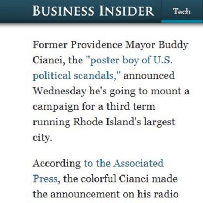 The AP story on Cianci's candidacy was picked up by many top political blogs and news outlets.