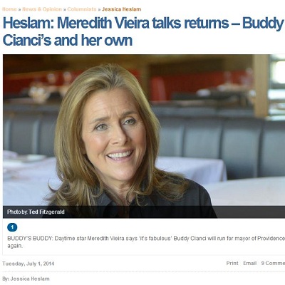 East Providence native and former Today and View star Meredith Vieira spoke with the Boston Herald about Cianci's return