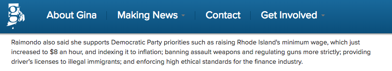 Rhode Island Governor Gina Raimondo had made a campaign promise to provide drivers' licenses to illegal immigrants (see below) when she ran in 2014 and despite proposals introduced in the General Assembly, Mattiello said it won’t happen for the second straight legislative session now.