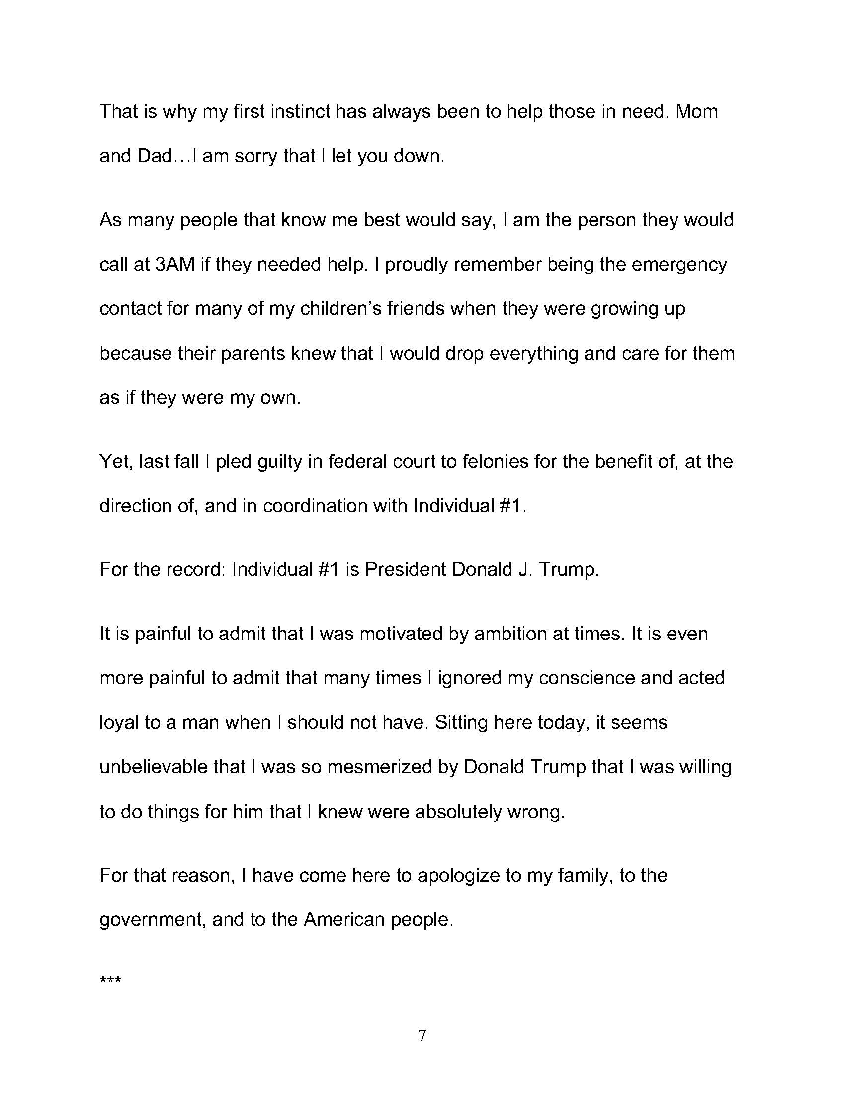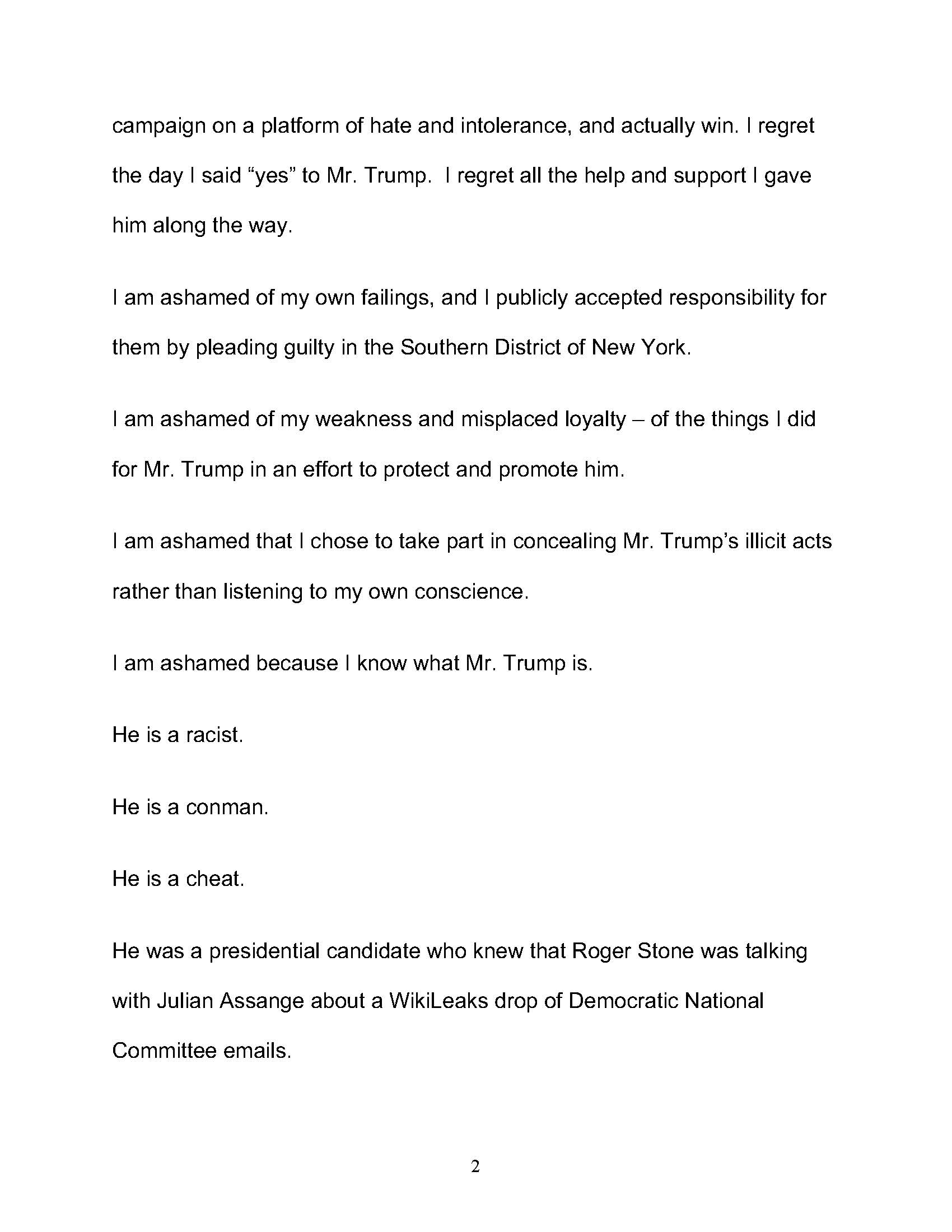 “I am ashamed that I chose to take part in concealing Mr. Trump’s illicit acts rather than listening to my own conscience.
