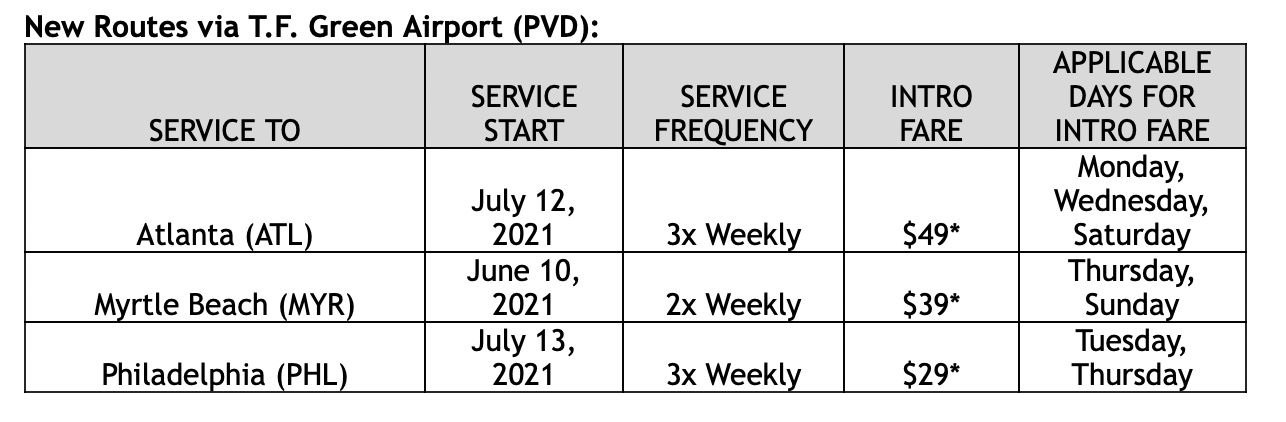 “We’re excited to expand our Providence service with new nonstop flights to three popular destinations: Atlanta, Myrtle Beach and Philadelphia,” said Tyri Squyres, Vice President of marketing, Frontier Airlines.