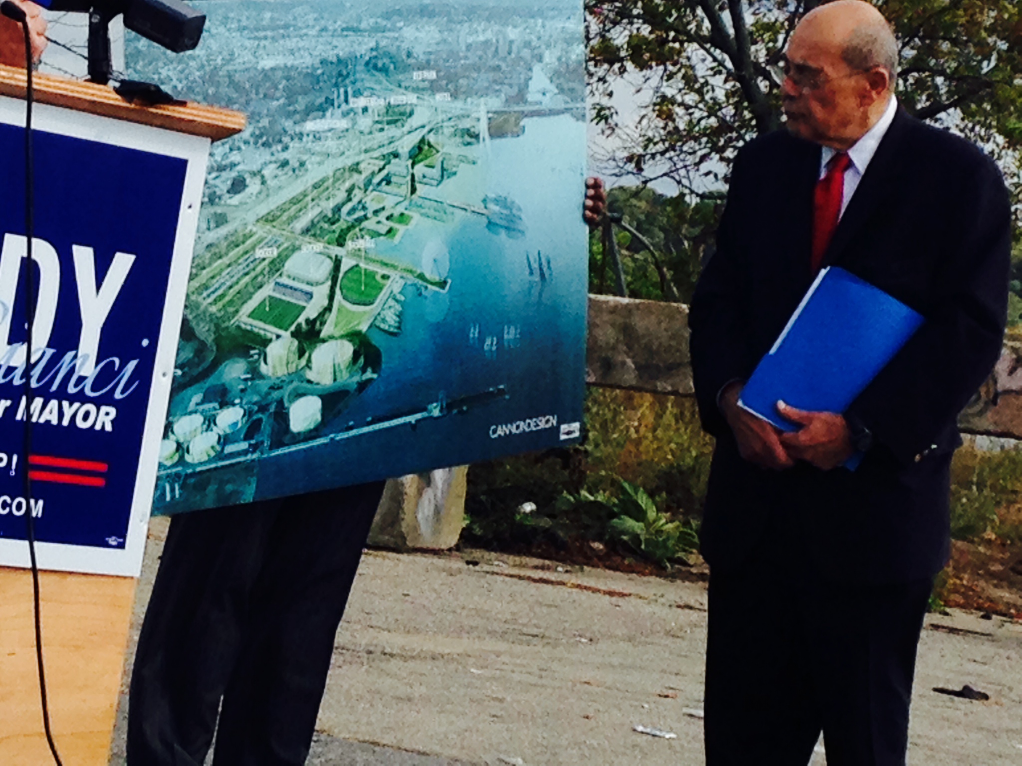 Cianci was joined by Providence City Councilmember Luis Aponte, as well as Mark Mendell and Sebastian Martellotto of Cannon Design who were commissioned by the Cianci campaign to design the new mixed-use shoreline envisioned by Cianci.