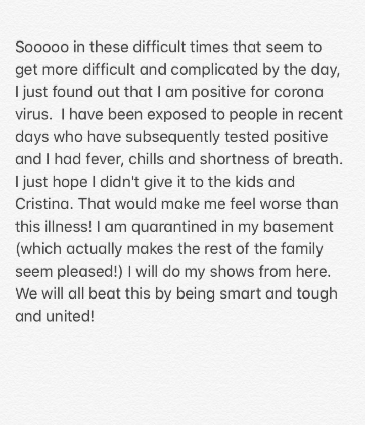 He is feeling well, and will continue to anchor his 9 p.m. program "Cuomo Prime Time" from his home.