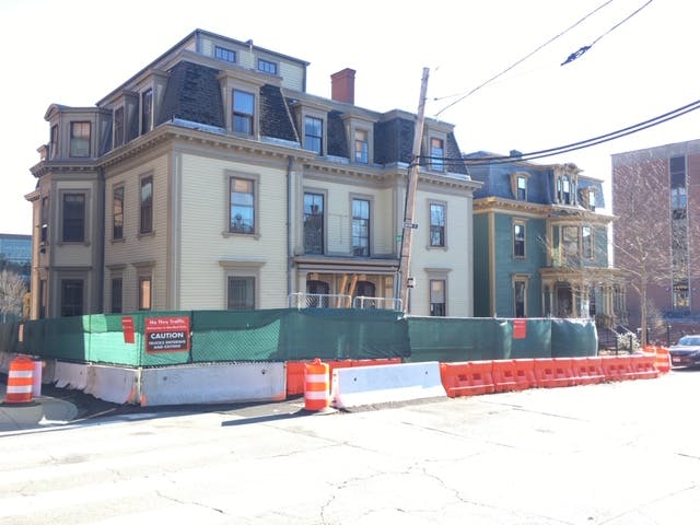 As the house is moved, it will pivot so the front doors of Sharpe House, which formerly faced Angell Street, will open onto Brown Street. The house will be set down on a prepared footing, and then a foundation will be built from underneath the structure.