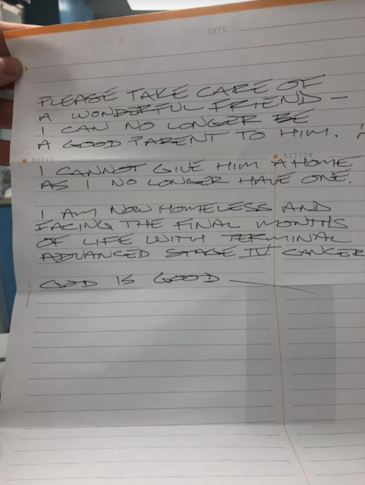 Please take care of a wonderful friend — I can no longer be a good parent to him. I cannot give him a home as I no longer have one.