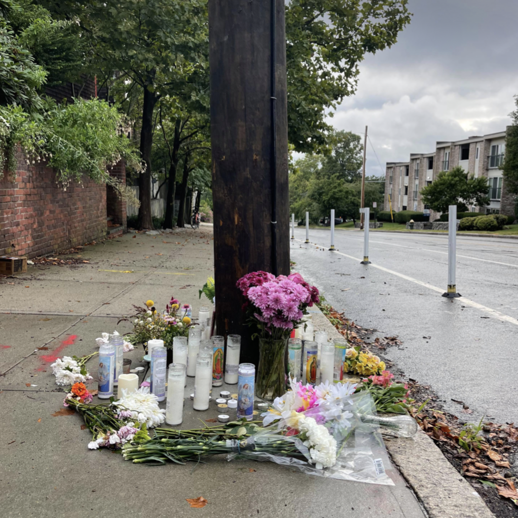 The memorial for Brophy-Baermann on Olney near North Main. Photo: Anthony SionniA man was reportedly jumped — and robbed — on Friday morning just yards away from where the city’s latest homicide occurred on early Sunday morning.
