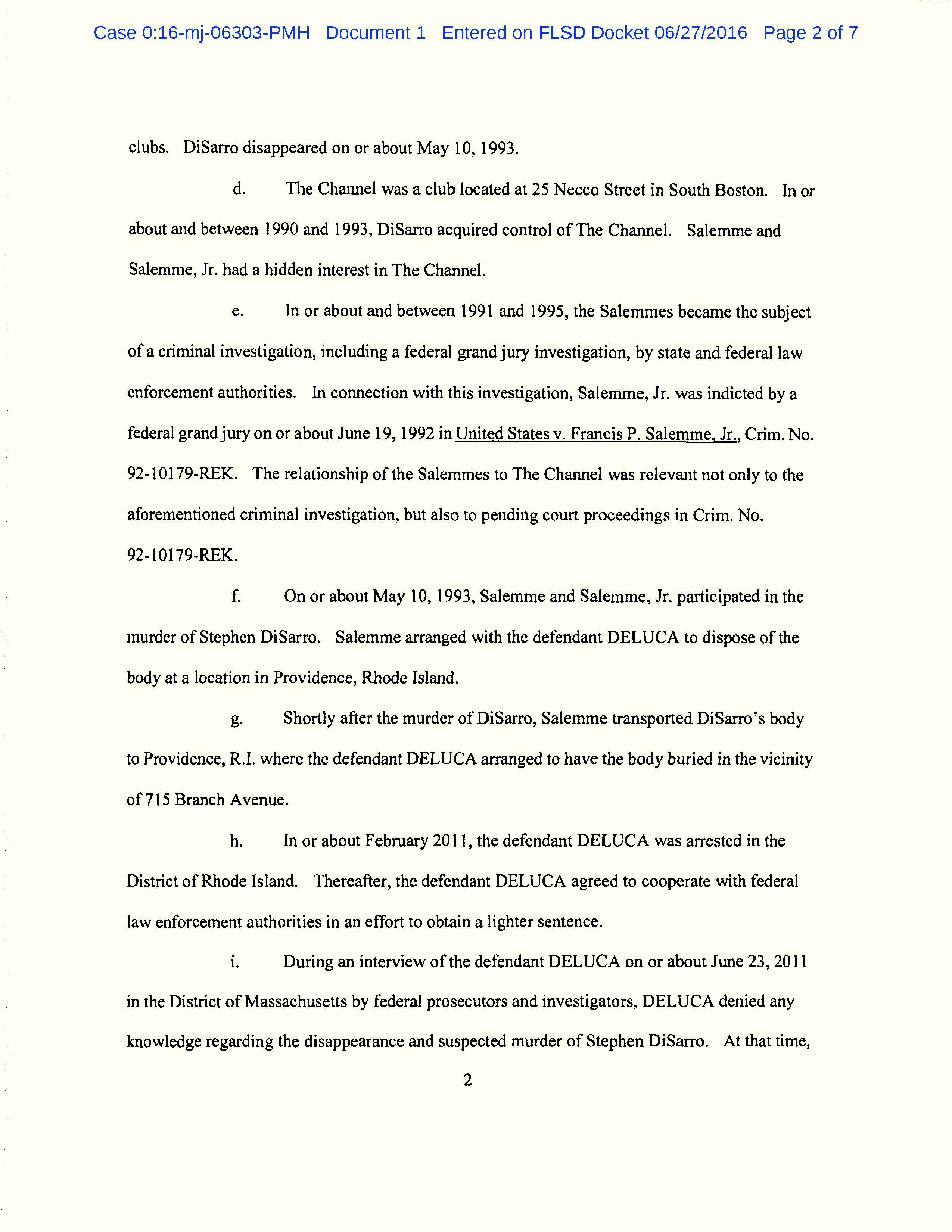 DeLuca has long been tied to the murder DiSarro, who GoLocal was first to report had long-time Providence ties.