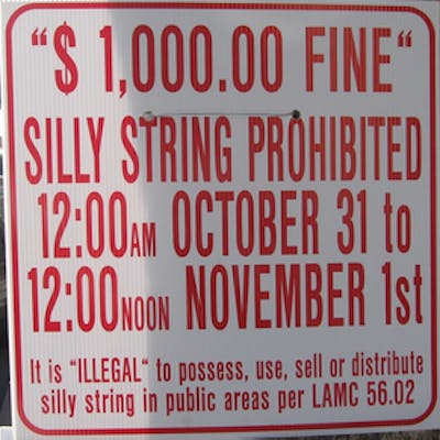 In 1996, in wake of a disruption at the town's Apple Harvest Festival where several parade attendees sprayed police officers and others with silly string, the town council passed an ordinance that bans the sale, use or possession of canned silly string at carnivals or parades and in public places. Violators will be fined $99.