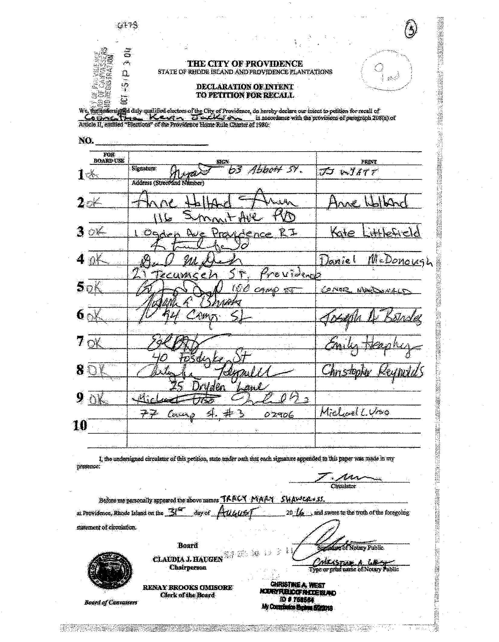 The City Solicitor's office -- who is representing the Providence Board of Canvassers in the recall effort -- is also tasked with representing members of the City Council, under City Charter.