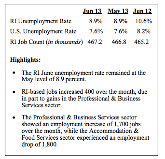 NEW: Rhode Island Unemployment Remained at 8.9 Percent for June