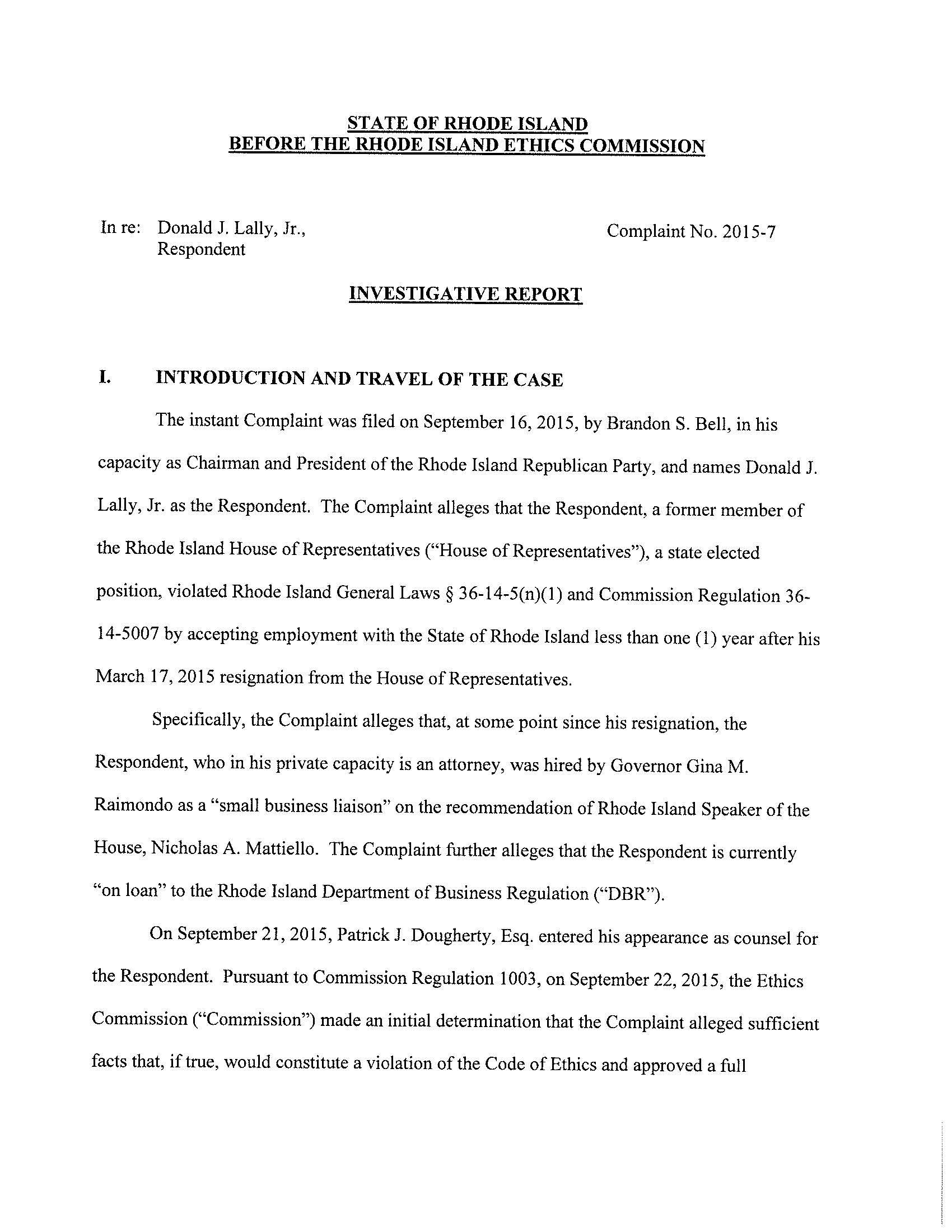 NEW: RI Ethics Commission Finds Probable Cause That Lally Violated Revolving Door Law