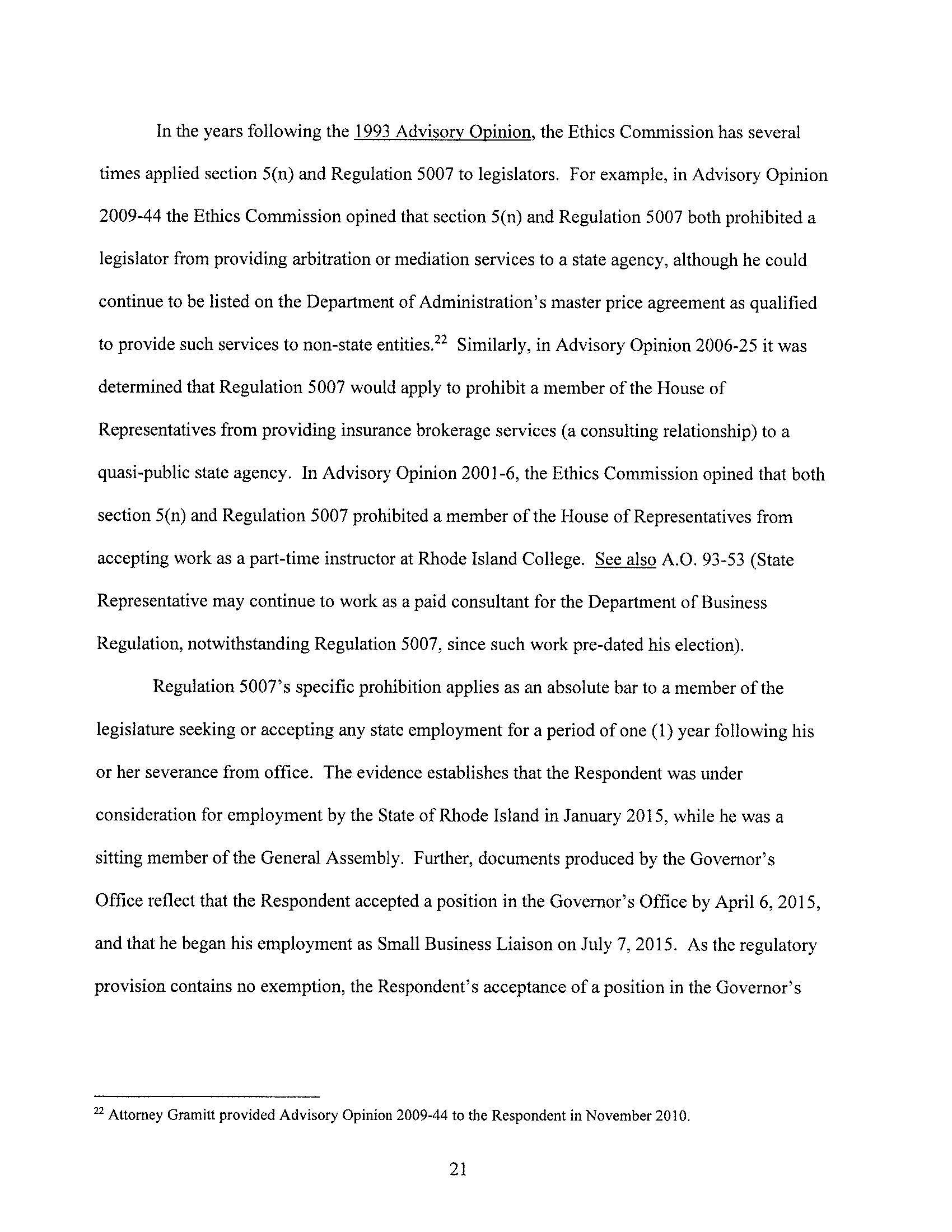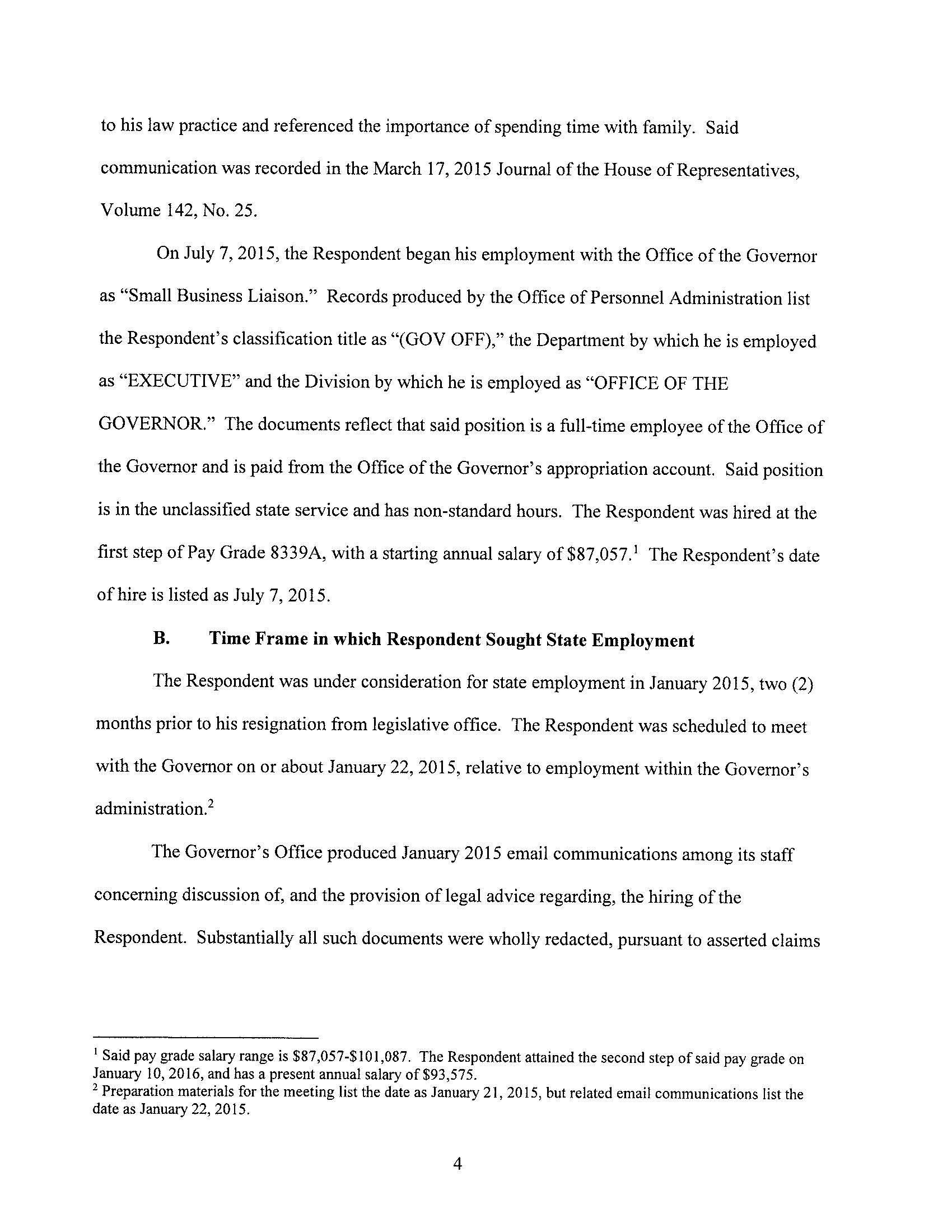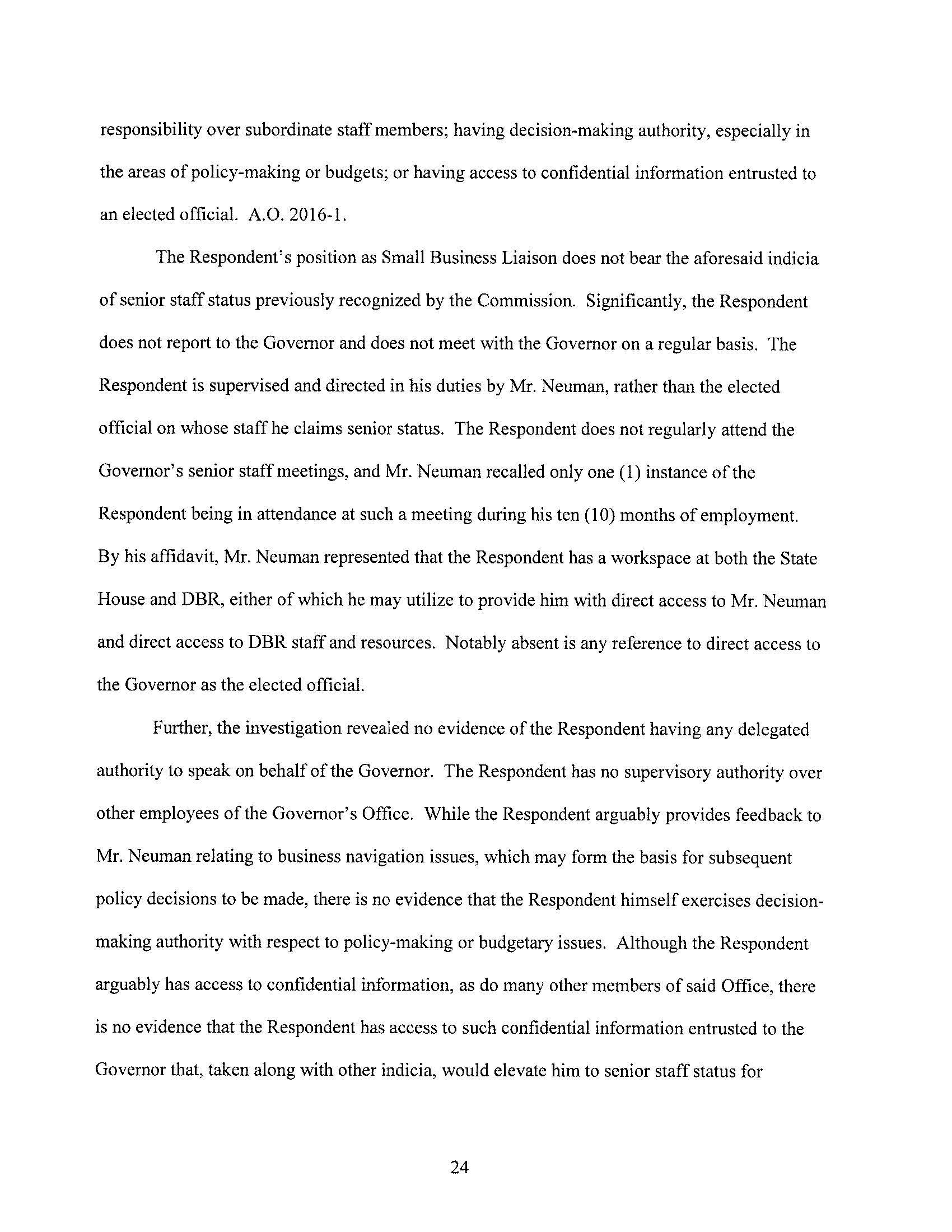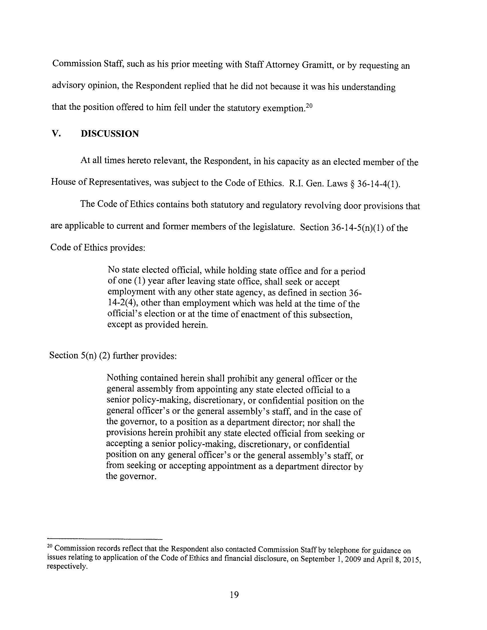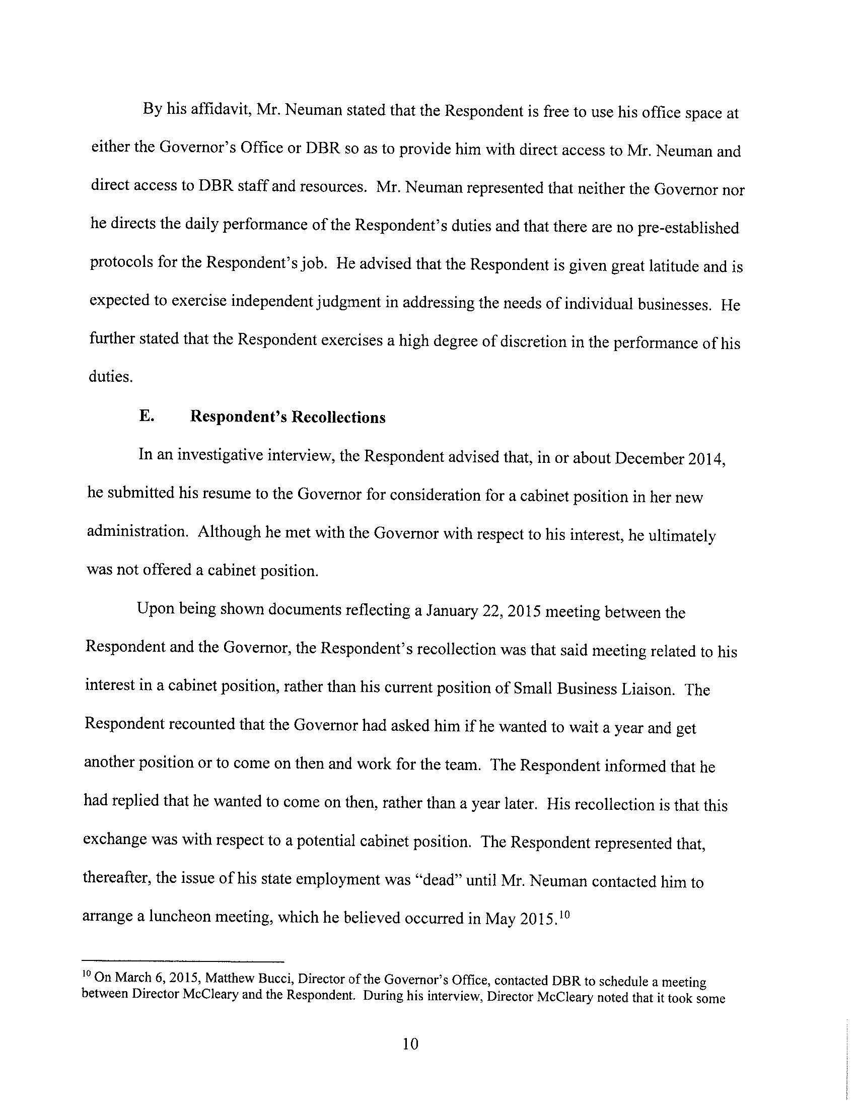The Ethics Commission found probable cause that Mr. Lally violated the revolving door provisions of the Code of Ethics. Note that this is only a preliminary step in the case, and is not a finding of violation.