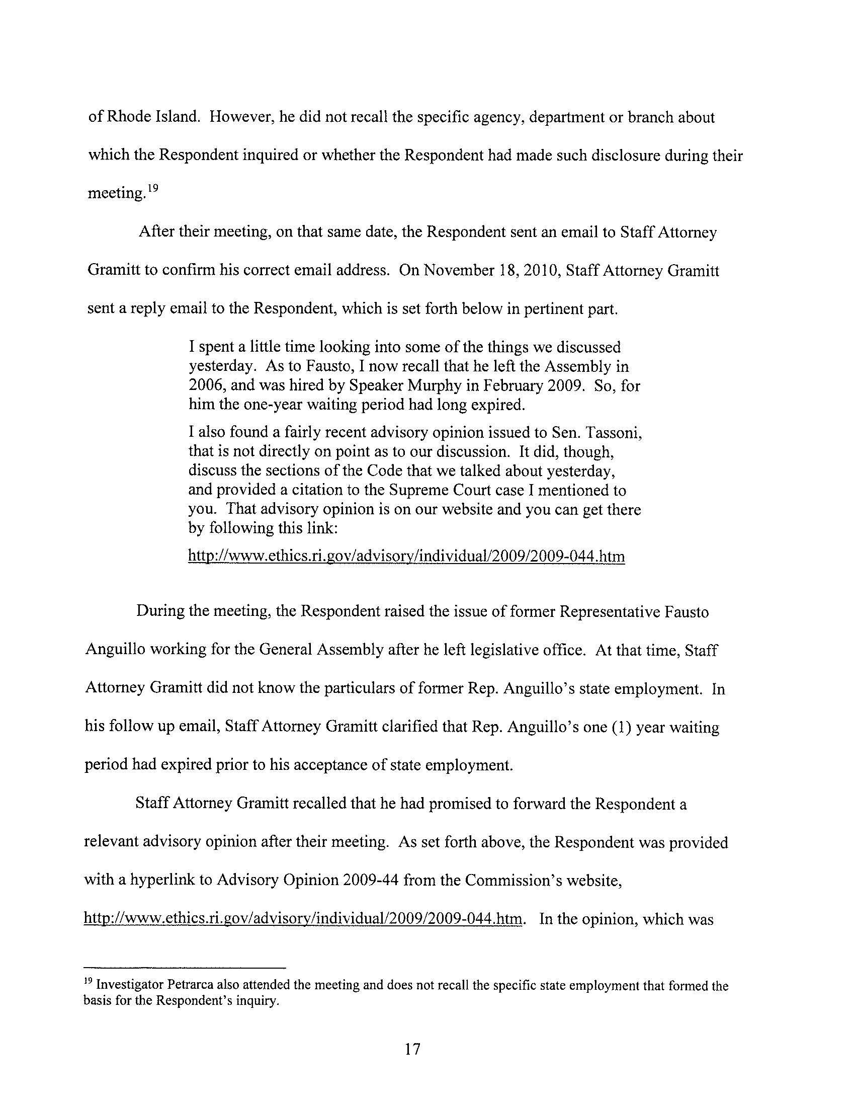 GET THE LATEST BREAKING NEWS HERE -- SIGN UP FOR GOLOCAL FREE DAILY EBLASTJason Grammitt, Staff Attorney for the Ethics Commission, provided the following statement on Tuesday: