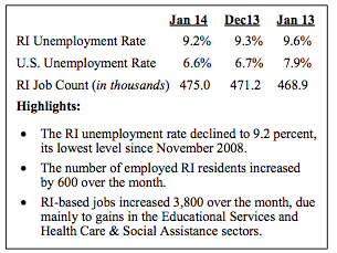 NEW: RI Unemployment Rate Drops to 9.2 percent in January