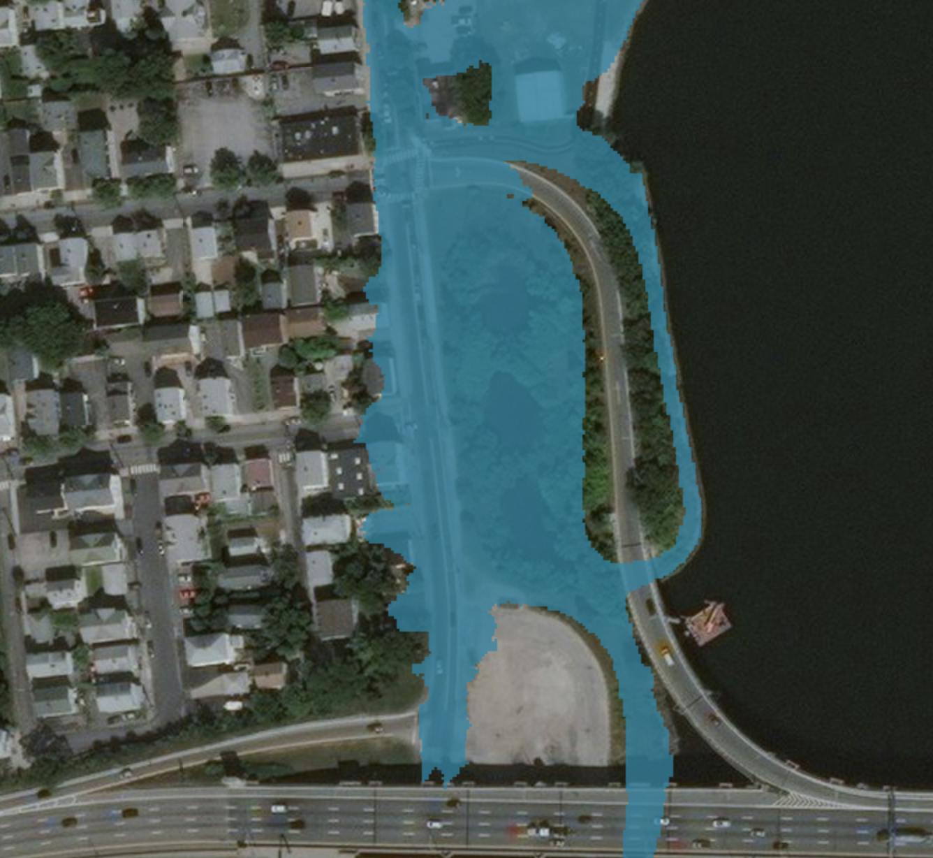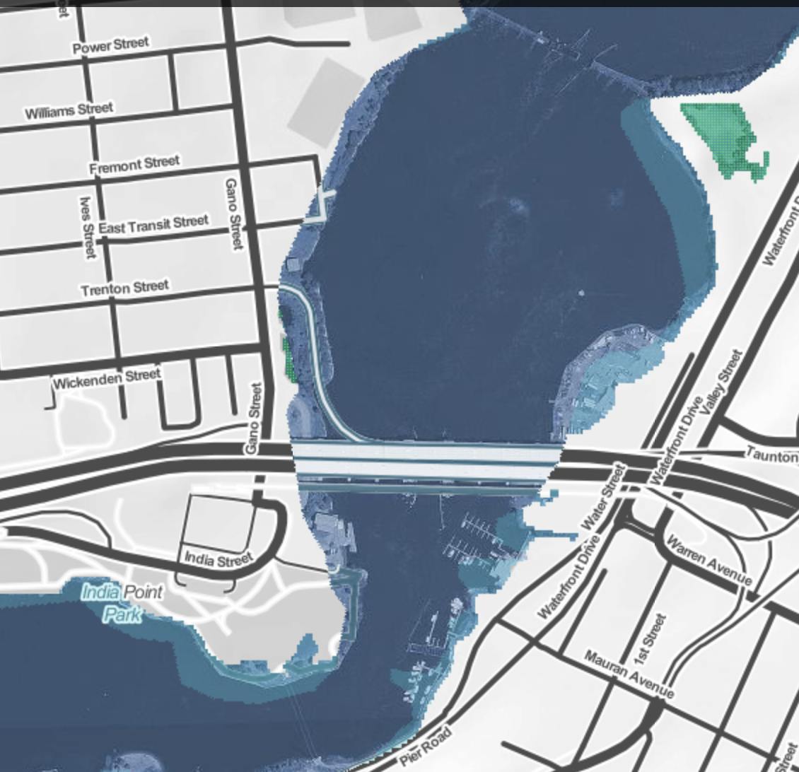According to data from both the federal National Oceanic and Atmospheric Agency, and the Rhode Island Sea Grant and the University of Rhode Island’s Coastal Resources Center, the Gano Street area in question -- where RIDOT wants to demolish the existing off-ramp and construct a new on-ramp -- could be underwater based on a range of known predictive scenarios in the next 30 years.