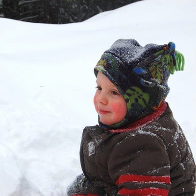 "Dress infants and children warmly for outdoor activities,” HealthyChildren.org recommends, "Several thin layers will keep them dry and warm. Don’t forget warm boots, gloves or mittens, and a hat."