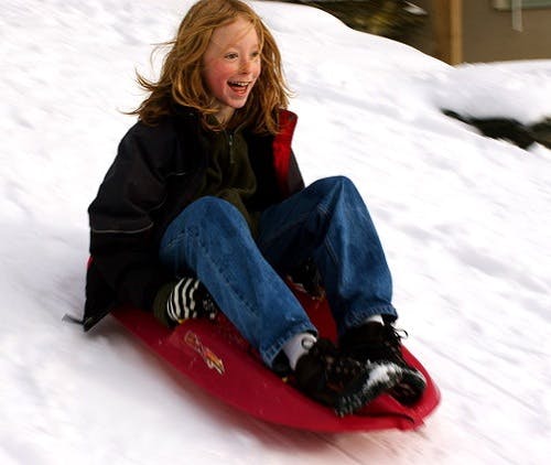 Be sure to keep sledders away from motor vehicles, trees and other crowded areas. Also note that sledding feet first or sitting up, rather than lying down and heading down the hill head-first, will help prevent head injuries.