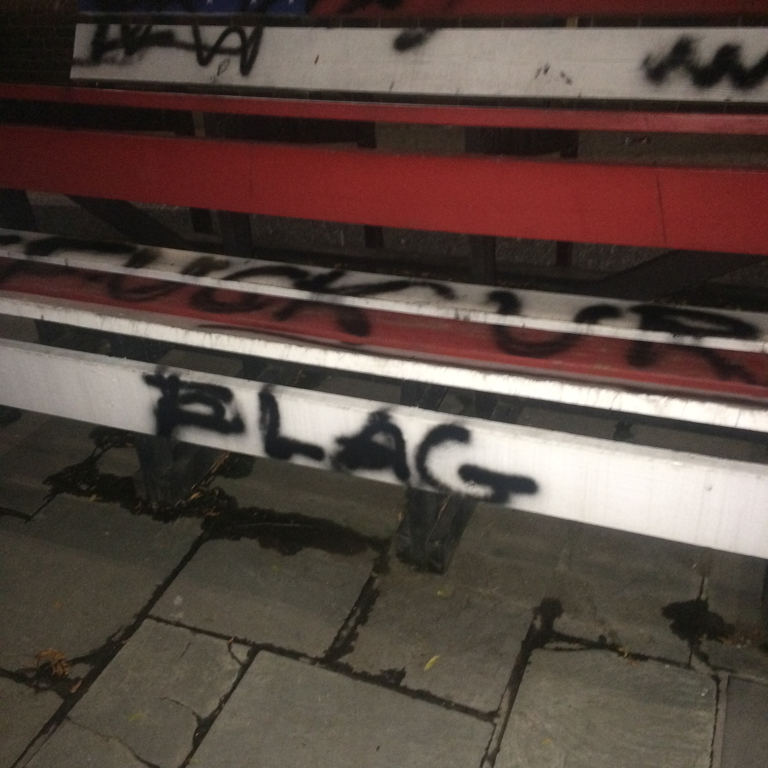 Thursday's incident -- a swear spray painted on an American flag at Brown.The American flag controversy at Brown University in Providence took a new and disturbing twist on Thursday, when a bench in front of the Theta Alpha fraternity at Chapin Hall, which is painted as an American flag, was spray painted with the words “Fuck Ur Flag.”
