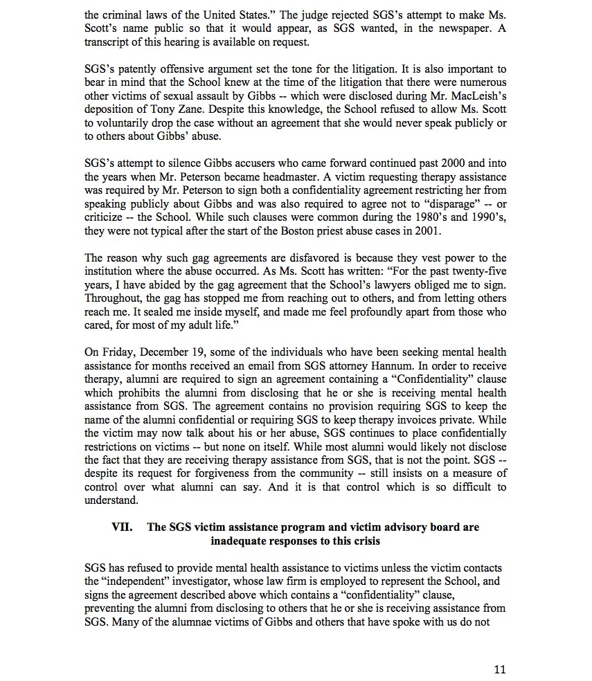 In the midst of the holiday week, the school released a letter to alumni including a report that admitted widespread sexual abuse. The report prepared by the law firm Schwartz Hannum admits that at least six staffers were involved in sexual abuse, but only named one of the former employees — Al Gibbs.