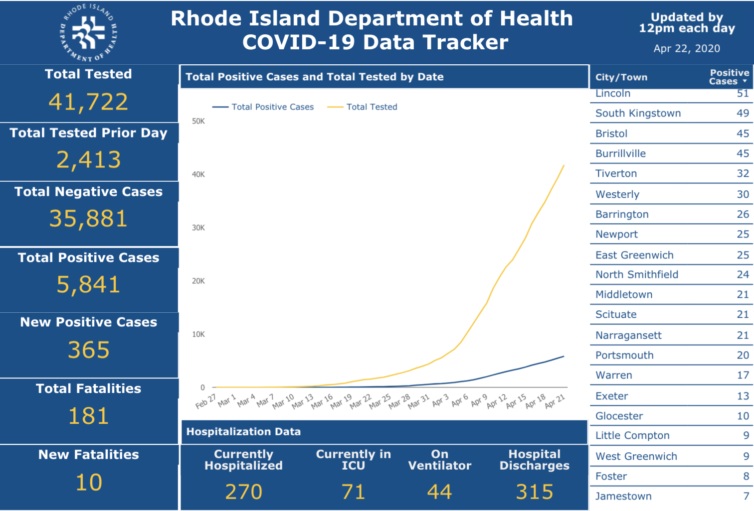NEW: Ten Additional COVID-19 Deaths in RI, 365 New Cases - Watch 2:30 PM Briefing HERE