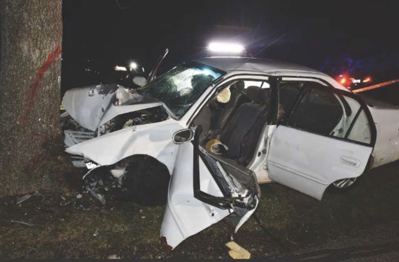 When officers arrived at the scene, they said found a Toyota Corolla against a tree with "heavy front-end damage and both airbags deployed."