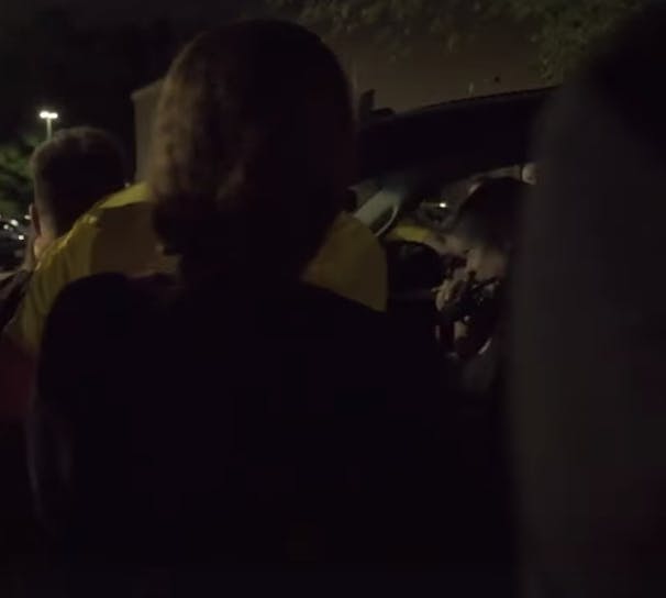 A vigil at the Wyatt Detention Center turned into a chaotic scene when a pickup truck came close to hitting protesters.