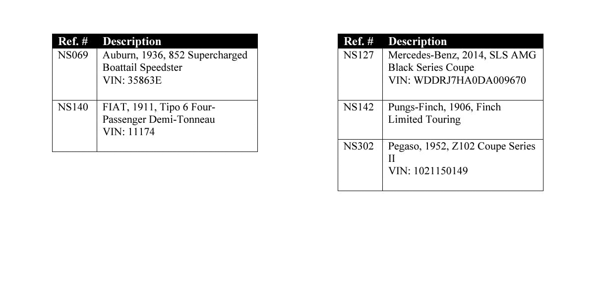 Both collectors reviewed the list of the vehicles in detail, and one estimated the vehicles are valued at approximately $20 million. The second collector estimated the appraised value would exceed $30 million.