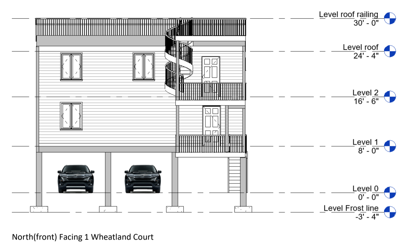 McHugh spoke of the couple’s decision to “build up,” to provide parking, as they are currently required to park on the grass in front of the house