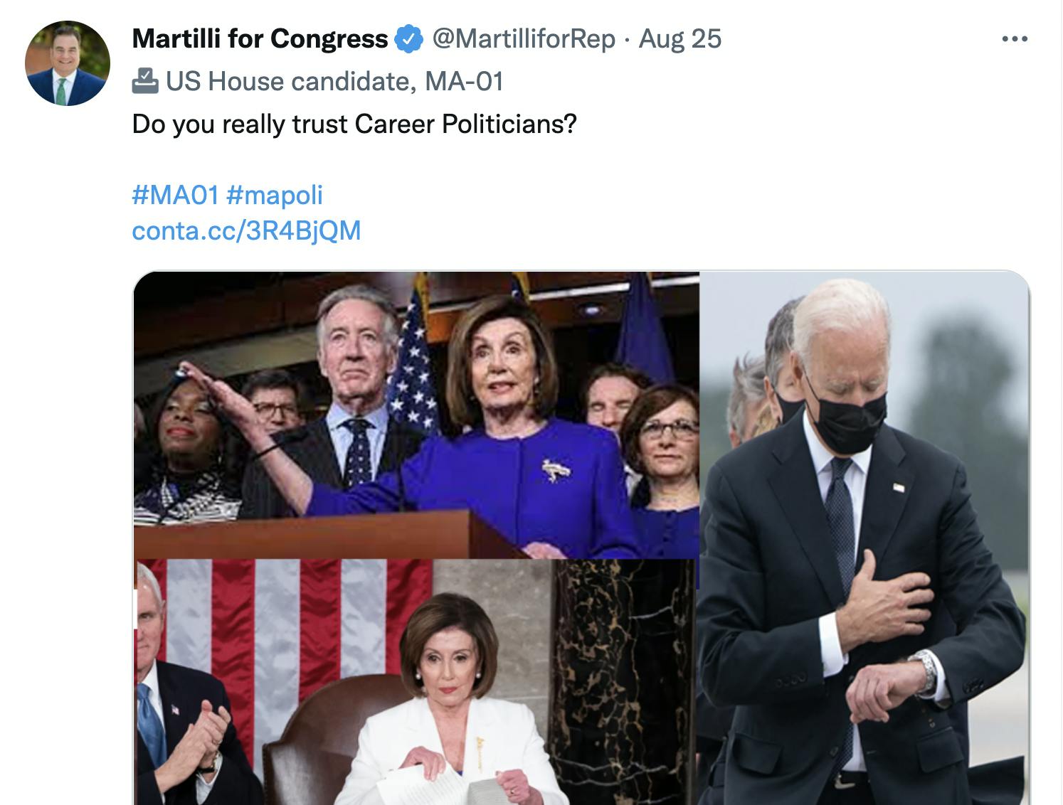 While Martilli is supposed to be working Washington, D.C. contacts on behalf of North Providence, in his race for a seat in Congress as a Republican, he is blasting the Biden administration and Democratic members of Congress — regularly.