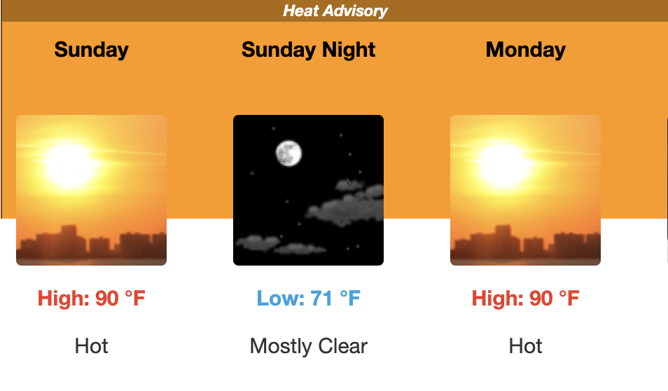 GET THE LATEST BREAKING NEWS HERE -- SIGN UP FOR GOLOCAL FREE DAILY EBLAST...HEAT ADVISORY REMAINS IN EFFECT FROM 7 AM SUNDAY TO 8 PM EDT MONDAY...