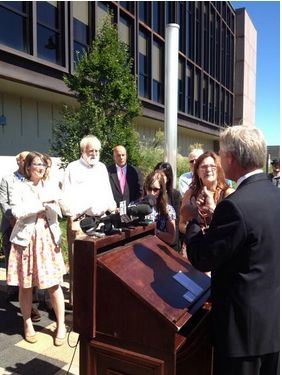 Chafee telling the press corps at the DMV, in September 2013, that he would not be seeking re-election."When I came in, [there was] high unemployment, a lot of foreclosures, labor unrest, especially in Central Falls with teachers. I came in, got people back to work. A lot of Governors talk about creating 20,00 jobs - we've done it," said Chafee.