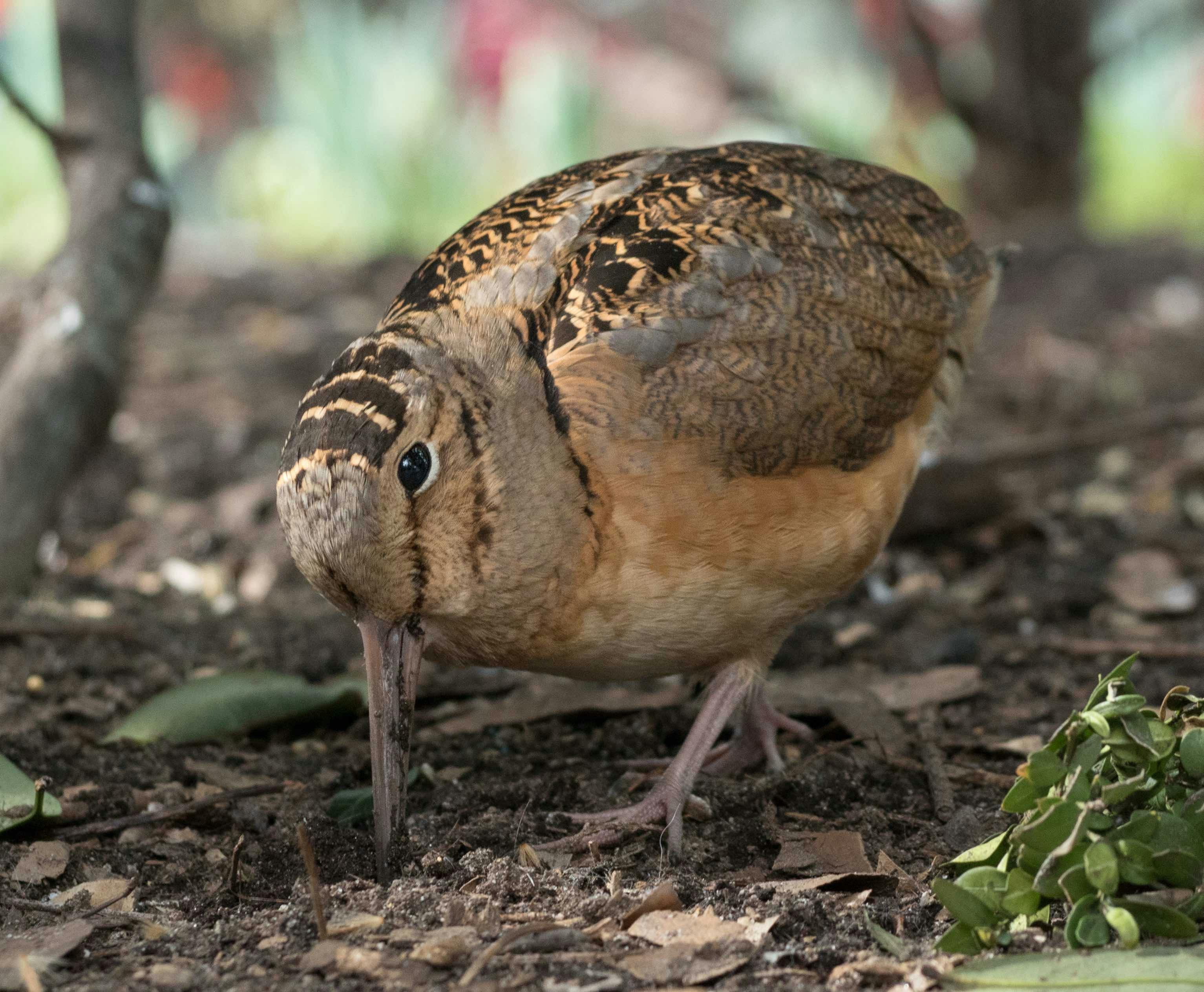 Color-wise, a woodcock looks like leaf litter. It’s a collage of brown, gray and black that allows it to blend in with the ground. The bird’s belly is the color of baked red clay.