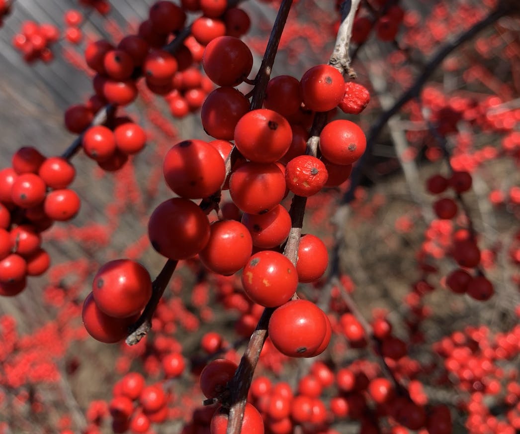In particular, we were impressed by the bright stems of several species of dogwoods, such as yellow-twig, flame, red and Baton Rouge. Meanwhile, sumac, catalpa, and Japanese pagoda tree all featured some form of fruit, with the most eye-catching berries belonging to winterberry. This compact holly, which drops its leaves each fall, showed off a crown of bright red berries.