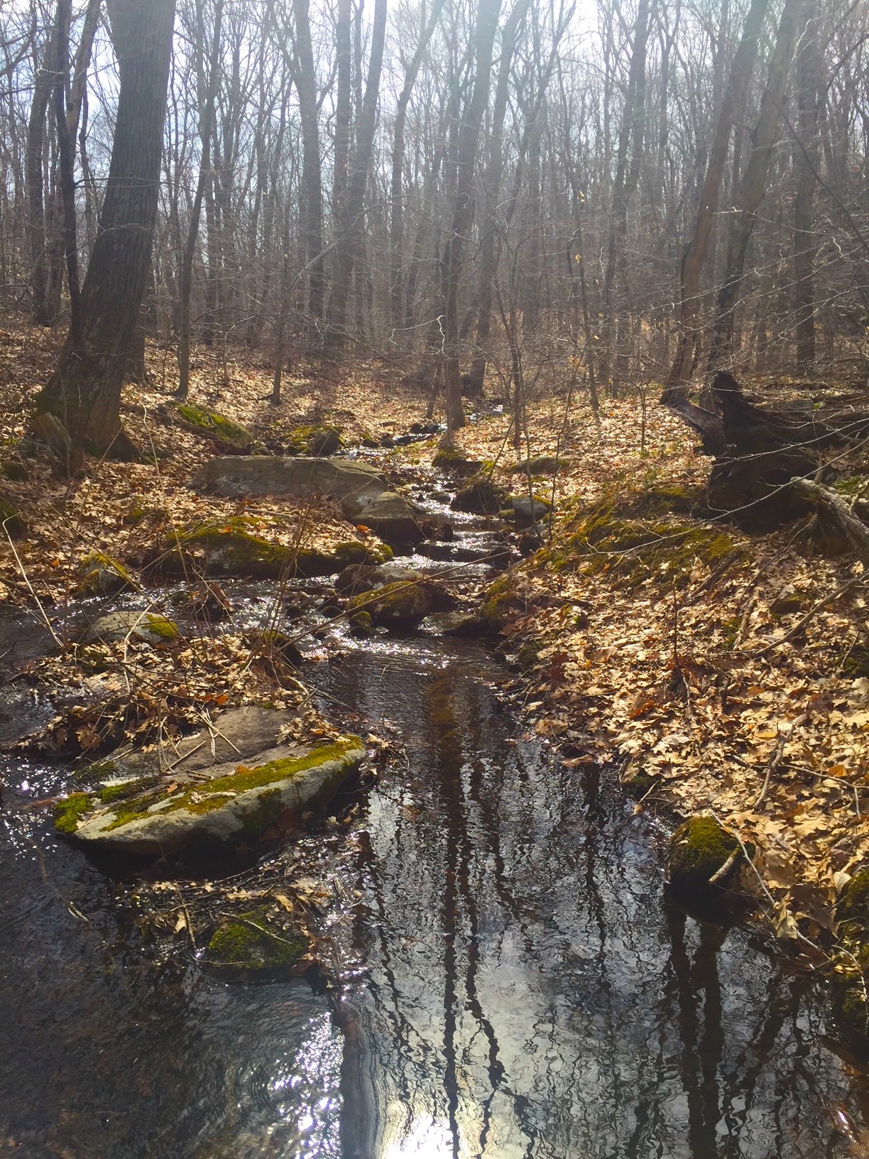 At several points, we listened to streams babble. We paused at one crossing, noting the water was clear, yet tannic (brown) in color. Red oaks and tannic-colored water often go together.