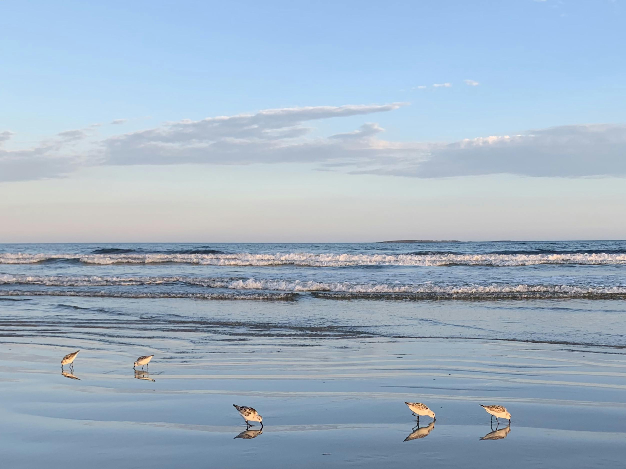 On Old Orchard Beach, we walked for several miles, surrounded at times on the mudflat by hundreds of Semipalmated Sandpipers—small shorebirds that literally shuffled around our feet.